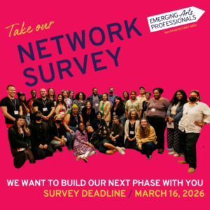 We’re building something new for 2026 — and we want to build it with you. Please take 10 minutes to complete this survey and share your input. Your feedback will directly shape Emerging Arts Professionals’ next program, helping ensure it is relevant, accessible, and responsive to the needs of our Bay Area arts and culture network. Thank you for being part of this work with us.